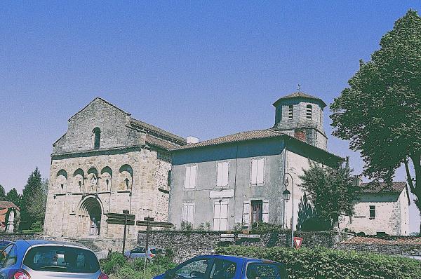 L'église Saint-Eutrope a été érigée en grande partie aux 11ème et 12ème siècles. Elle présente une nef s'élevant par paliers successifs vers le choeur. Ce dernier est à chevet plat, il date du 13ème siècle, l'époque Gothique. Des travaux de restauration ont permis de mettre au jour de belles fresques dissimulées sous une épaisse couche de mousse. Les plus remarquables sont visibles au revers de la façade occidentale. Ces peintures divisées en cinq registres révèlent un bon état de conservation et une grande richesse de coloris, en particulier les bleus intenses et les verts. De haut en bas on reconnait la création, la Naissance du Christ, l'Illustration des Vices, la Vie des saints. Le dernier registre montre une série de personnages.